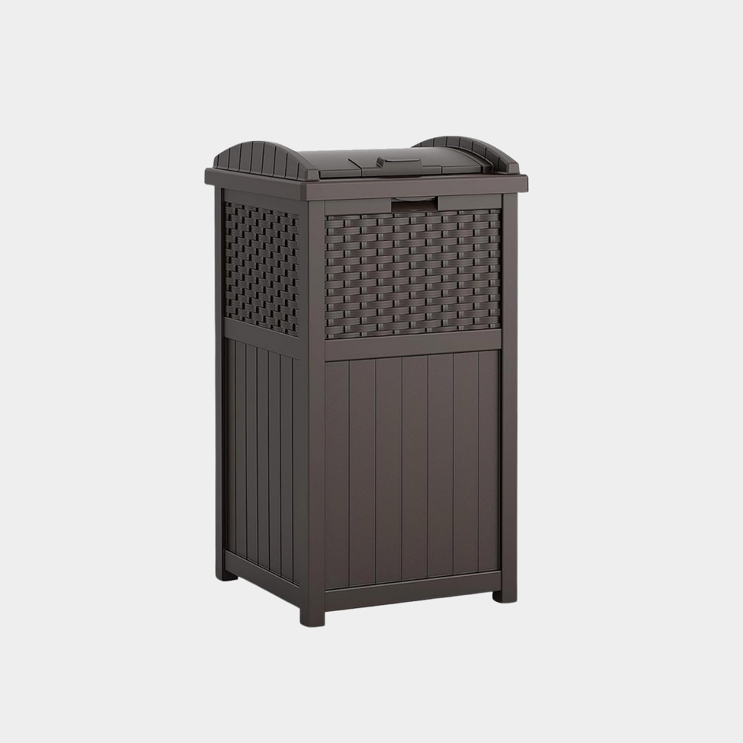 - Outdoor Patio Trash Can: Features a decorative wicker-style design for a stylish addition to your outdoor space; Greatly blends in your garden, backyard, or garage without being unsightly