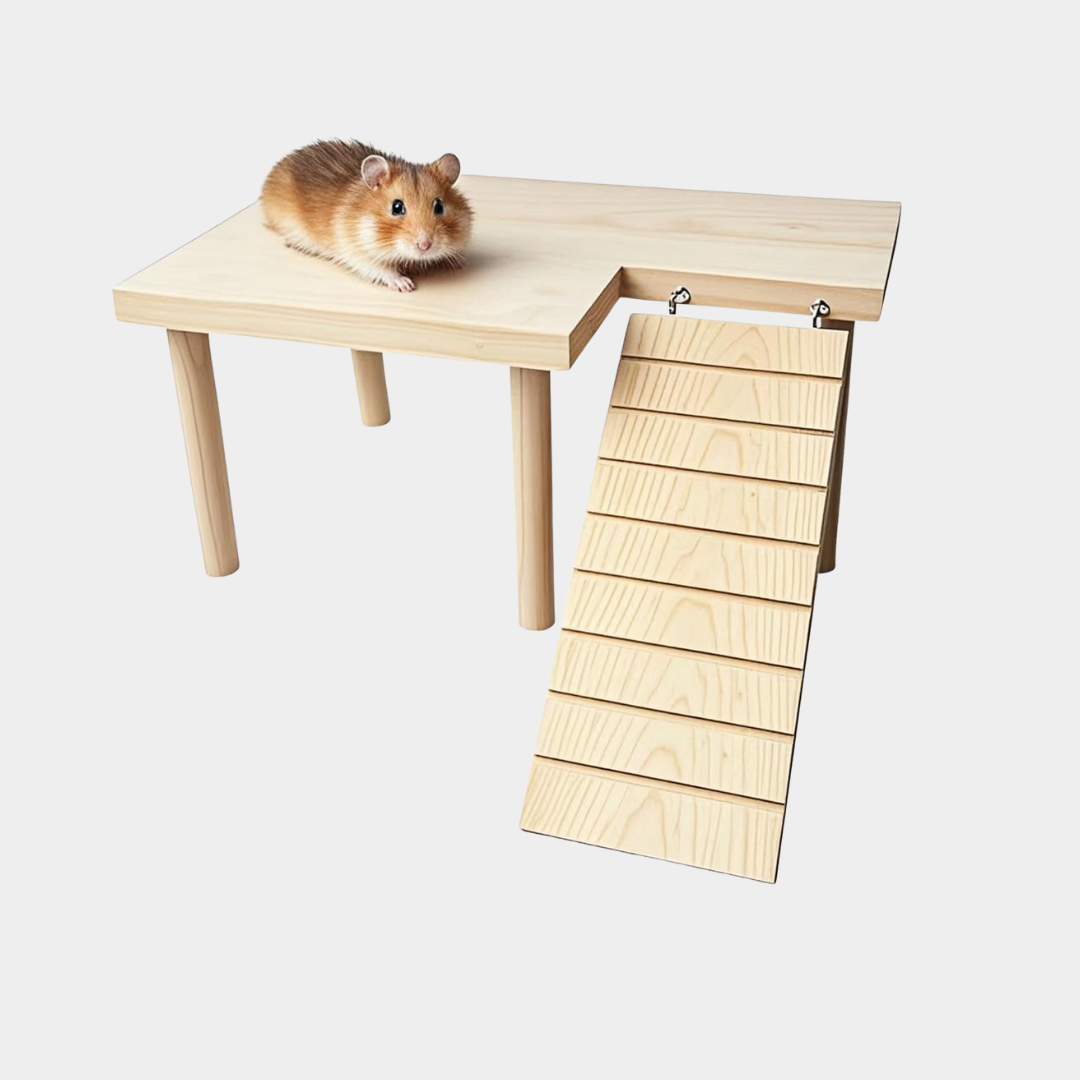 - High-Quality Wood Material: The hamster platform is crafted from natural, untreated wood, ensuring its eco-friendliness and non-toxicity. It is designed to be safe for biting, prioritizing the health and safety of hamsters.